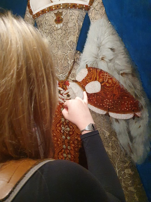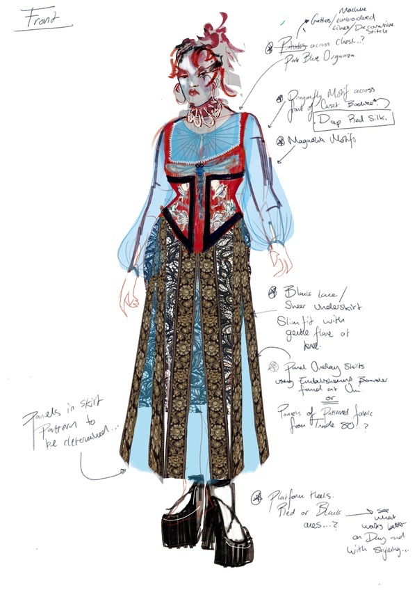 Eve and Holly's design draws inspiration from Medieval and Elizabethan portraits at the National Gallery, blending historical elements with modern influences that reflect Eve's identity as a young woman today. Her Embellished Eve persona embodies both tradition and individuality.‍ |