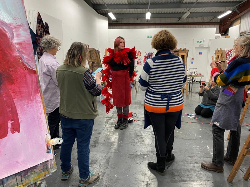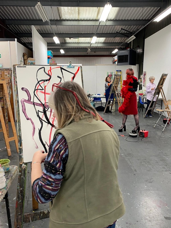 Enjoy the unique opportunity to paint from a specially designed costume created by Eve Stuart and a fellow costume design student Holly Wright. Rich in pattern and texture, this bespoke outfit emphasises structure, silhouette, and movement — perfect for exploring the tactile beauty of fabric in motion.‍ |