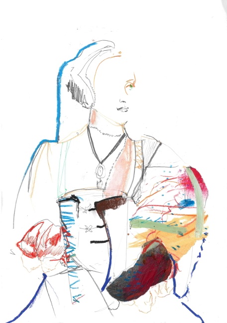 | Image: Tudor portrait, drawing & collage - Eve Stuart‍ |