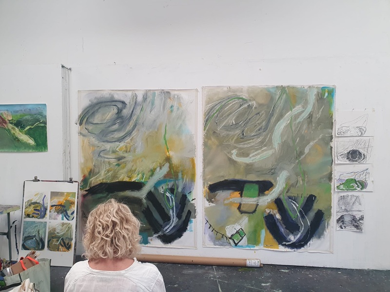 | Image: Sarita Robson working on paintings from her Chalk Down studies at the Seawhite Studio‍ |