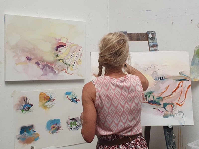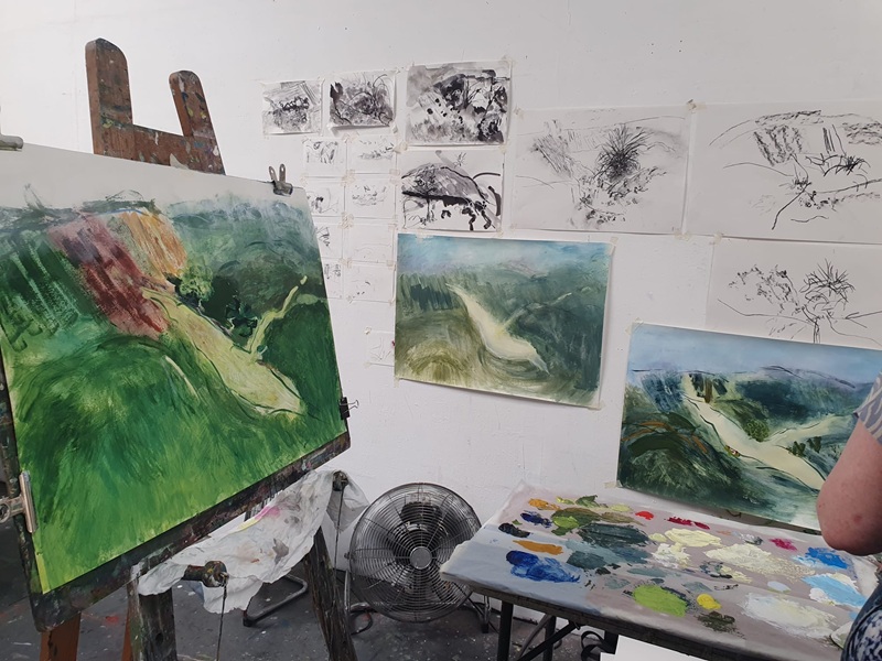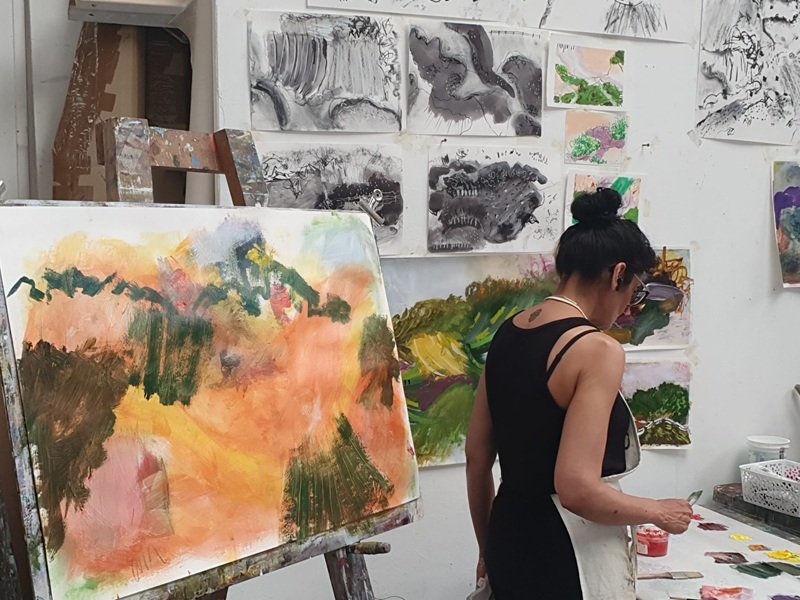 | | Image: Sandra Roche making paintings from studies‍ |