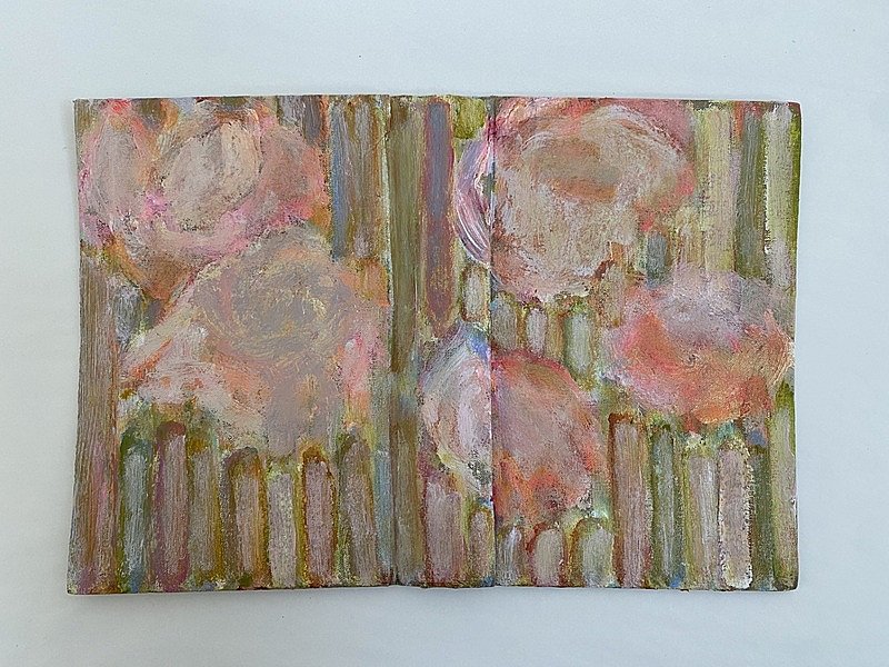 Liz Crossfield’s painting practice is rooted in connections with mother nature, childhood reveries and emotional sensation. They are abstracted floral sanctuaries that celebrate the lightness of being with the weight of the world. Working instinctively, her alchemic process is driven by a close engagement between subject and materials. Playfully working directly with colour and memory rather than realism, she paints on enveloping large-scale, unstretched canvas, alongside intimate small boards, oil paper and vintage book covers.
