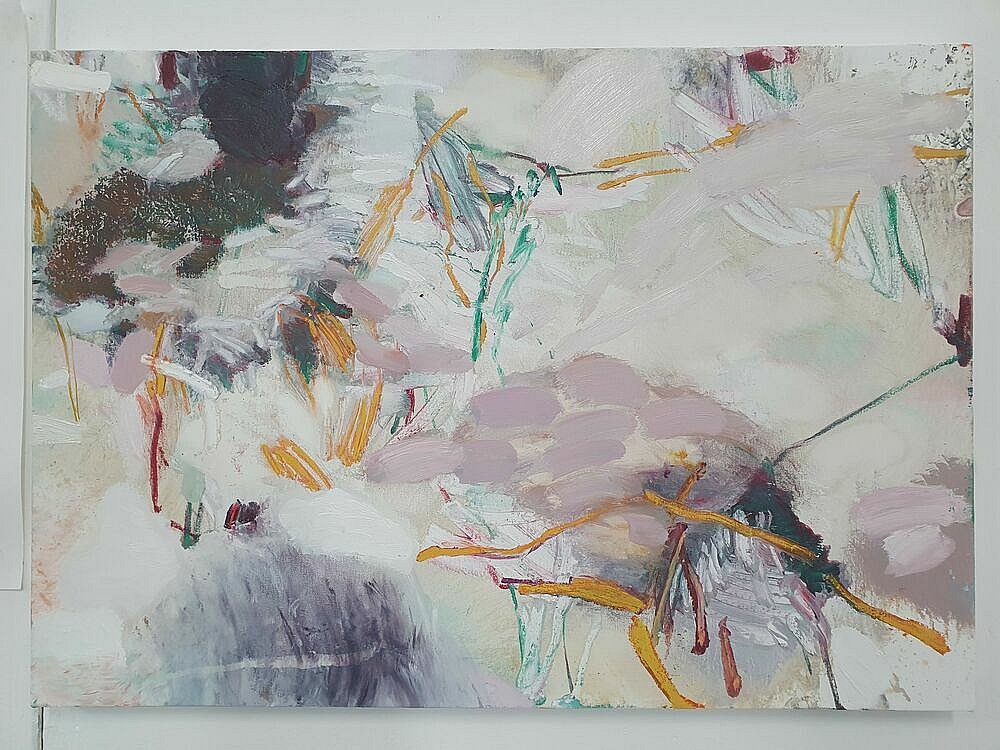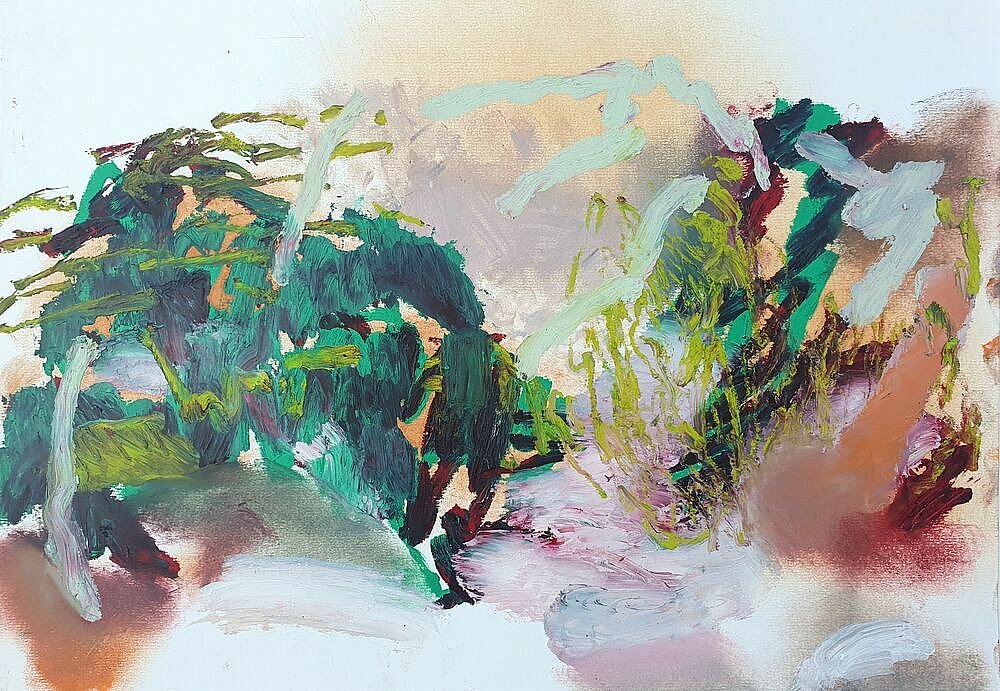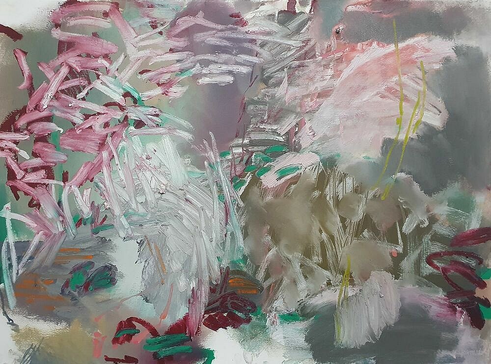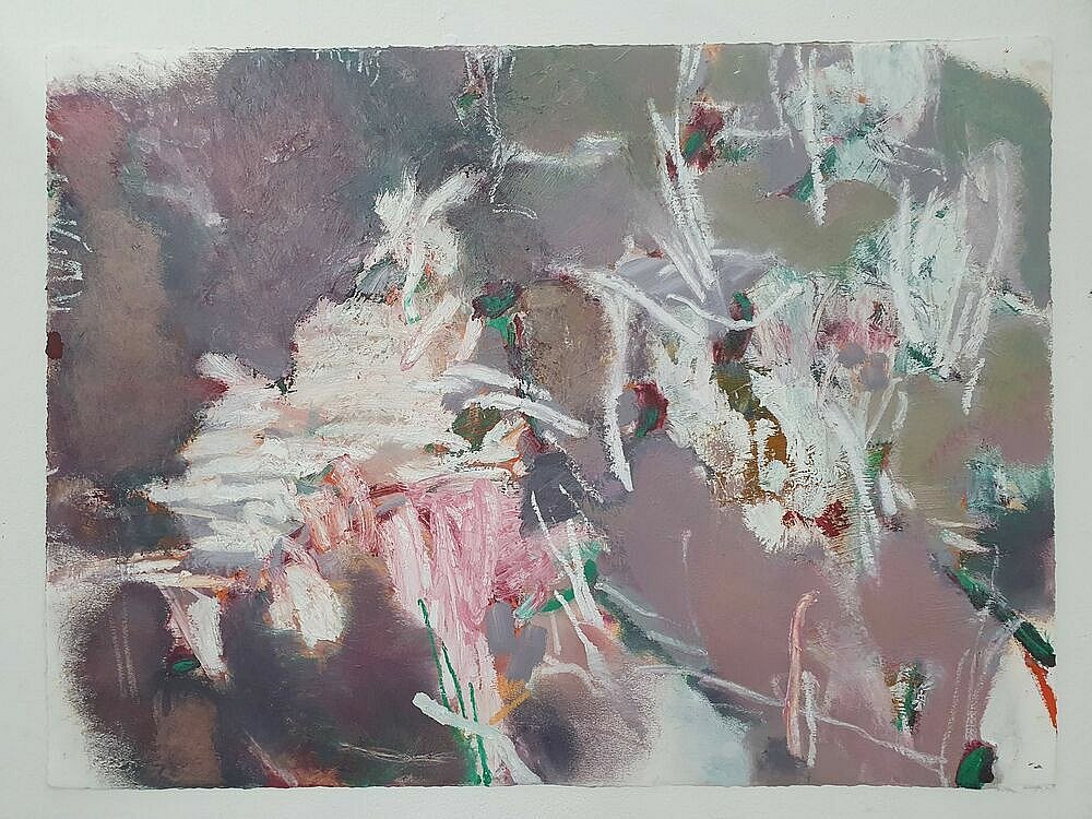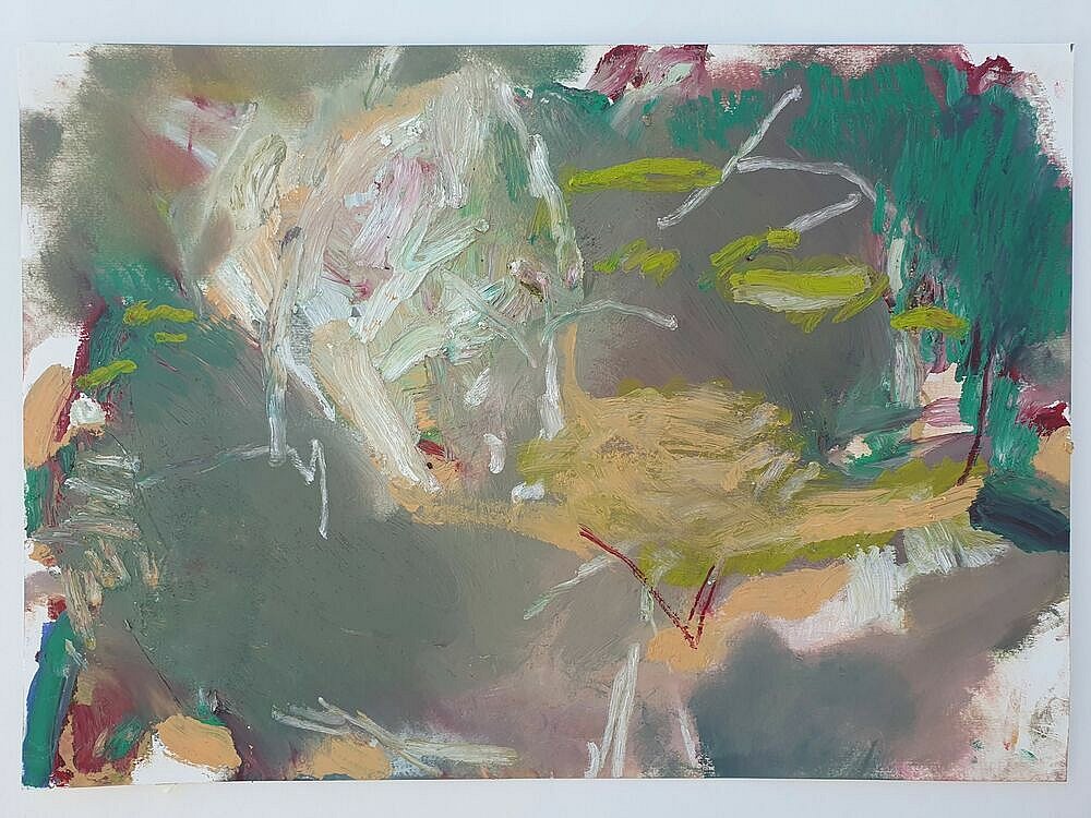 I brought these studies back home to my studio and used them as my reference as I led the Paint Fit Class. As I unpacked what the potential was in the studies and selected my focus for the paintings my touch was ‘tough’.This toughness was the quality of being there amongst it, the plants and Nature, but it was also an instruction to myself. As I applied the paint; putting on, taking off, organising and layering the marks I was searching for the feeling of the tough tangle, the brutal and the beauty.