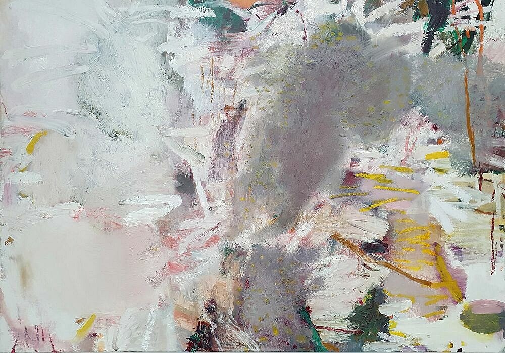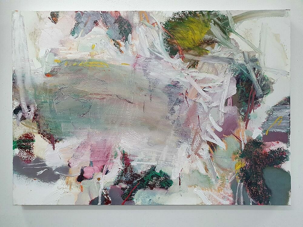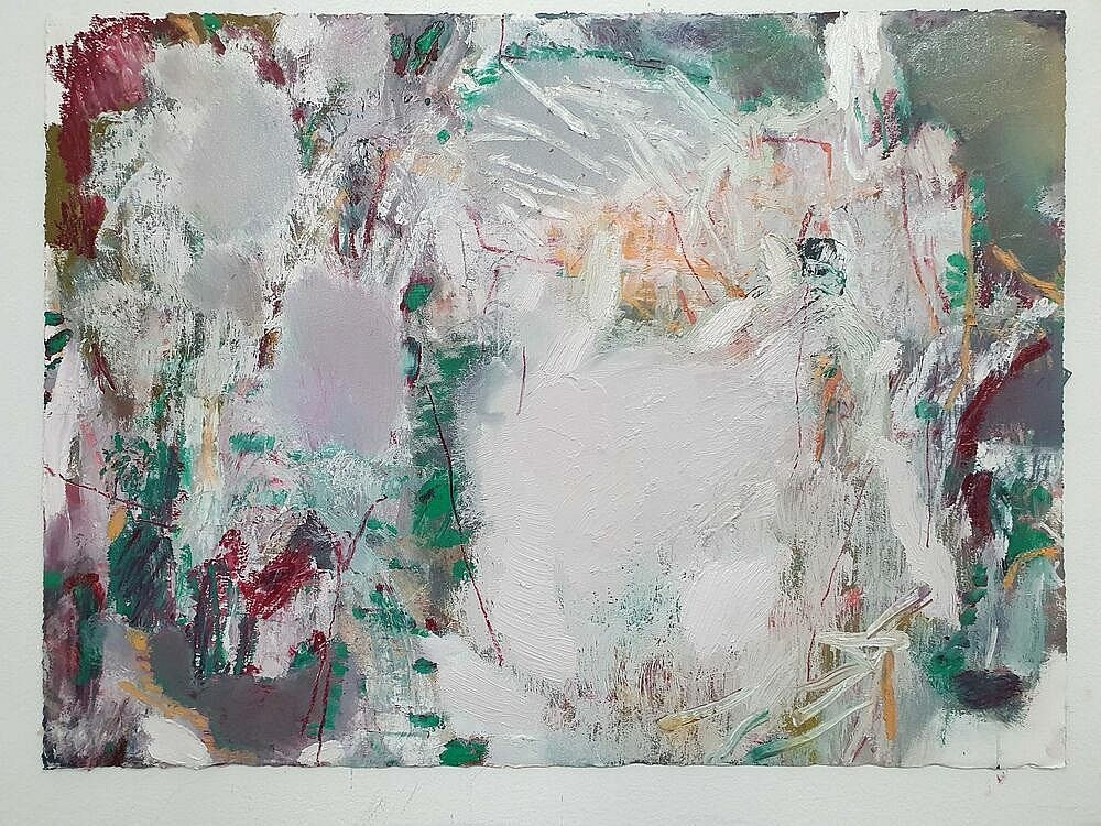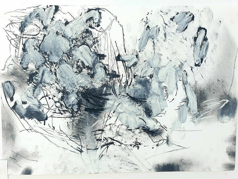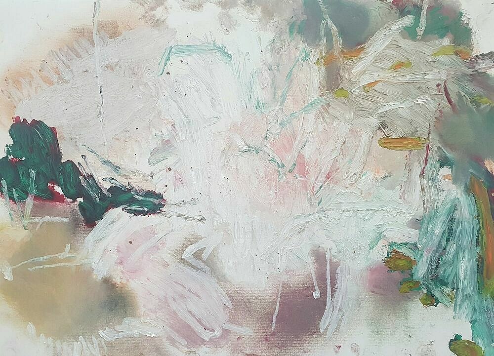 I brought these studies back home to my studio and used them as my reference as I led the Paint Fit Class. As I unpacked what the potential was in the studies and selected my focus for the paintings my touch was ‘tough’.This toughness was the quality of being there amongst it, the plants and Nature, but it was also an instruction to myself. As I applied the paint; putting on, taking off, organising and layering the marks I was searching for the feeling of the tough tangle, the brutal and the beauty.
