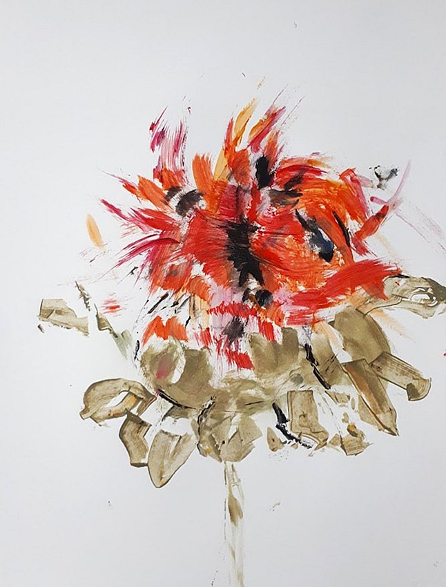 I frequently find that my art comes through what feels like ‘mess-making’ using acrylic paints and other media, and that then, when engaging mindfully with bodily movements - push, pull, slap, press, something new and surprising can emerge.