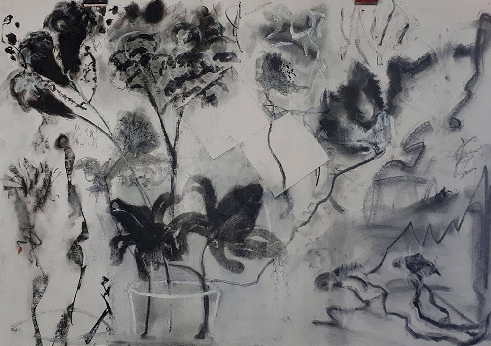 I use a variety of media and processes - paint, ink, charcoal, collage, along with screen-printing and mono-printing. As well as new materials, I like to use discarded materials that have had a life, and imprint upon them a new form or meaning which can express the reality that people have been pushed, pulled, dragged and pressed and have come through changed, and through which life emerges in new and unexpected ways.