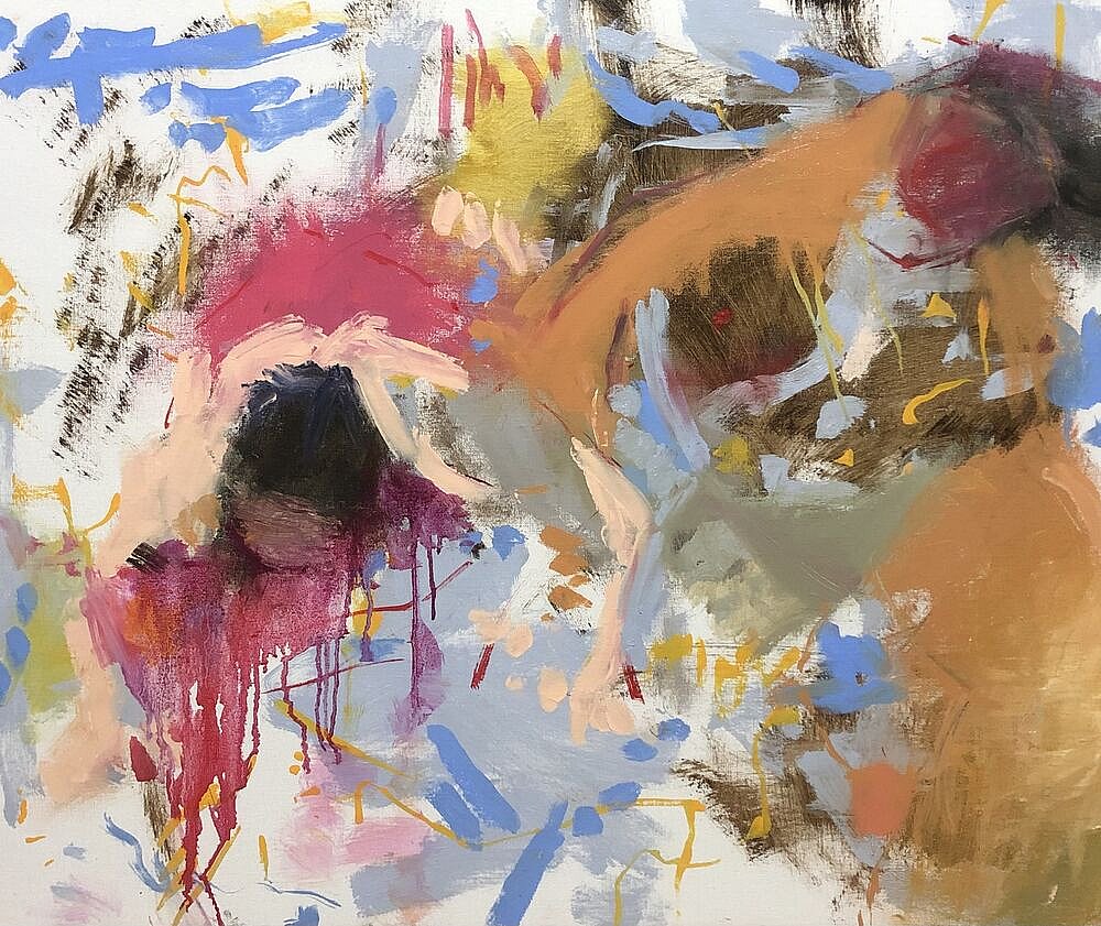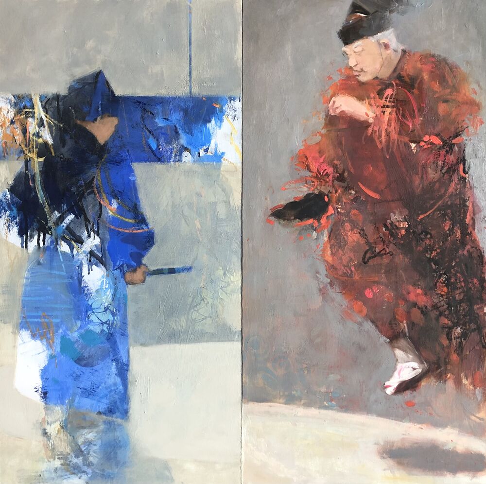 I joined Paint Fit in the autumn of 2022 to explore different ways to connect with my familiar yet new subject. The sumo series is ongoing. My starting point was to capture the power and movement of the matches. Then I thought I would like to touch on different aspects of the sport. The more I became involved, the more it fascinated me. Colourful mark making canvases became paintings of “gyoji” (umpires).