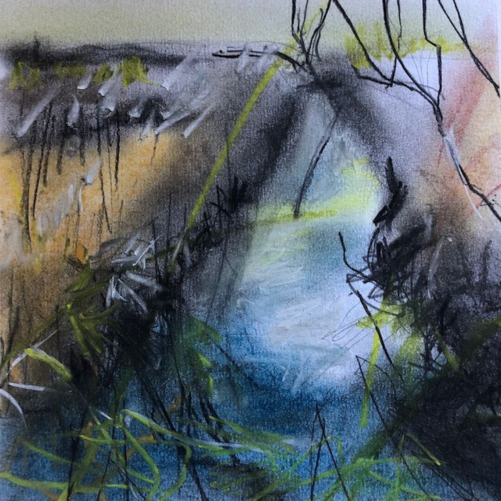 The Paint Fit retreat was a really valuable, concentrated opportunity to reflect on this, and exchange thoughts, challenges and ideas in a very open and supportive way with other artists on their own creative journeys, at the same time as trying out some new approaches. Crucially, it helped me to develop a much sharper focus on the subject of the new work I have been working on since then around the constantly shifting interplay between land, water and light in the Cambridgeshire fenland. The paintings and sketches here are part of that journey of exploring and experimenting with colour, line and mark-making, as well as with the artmaking process itself.