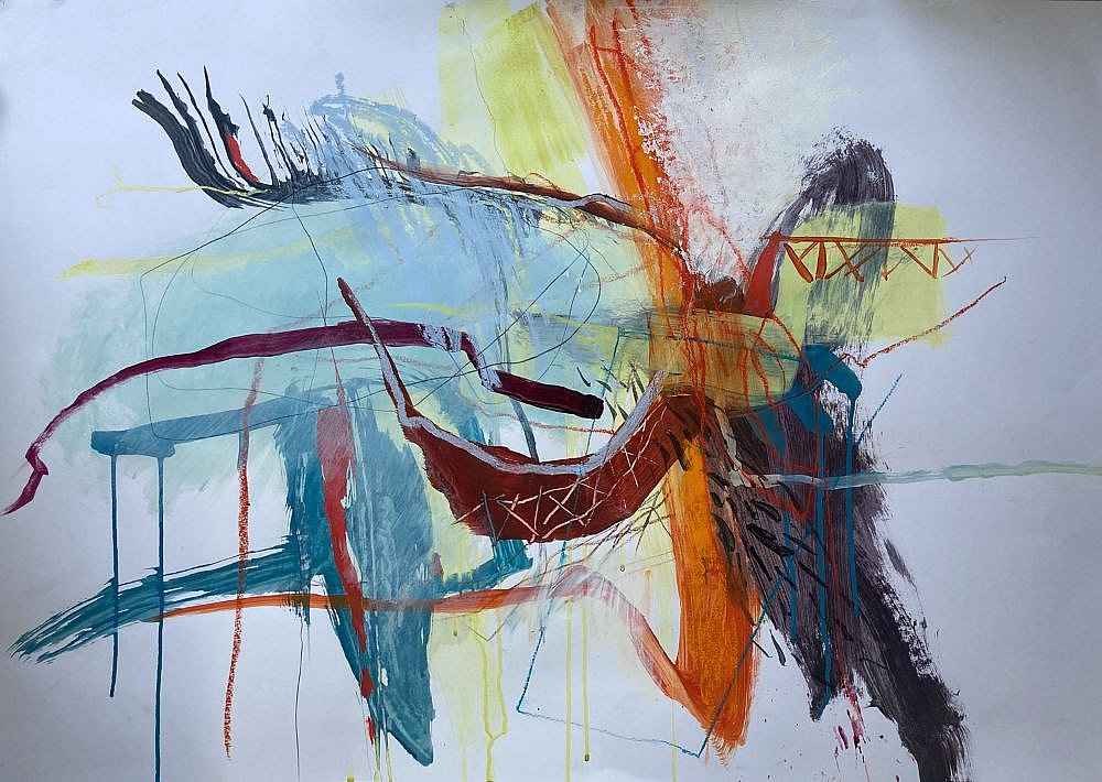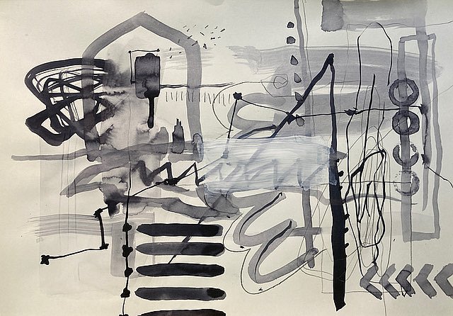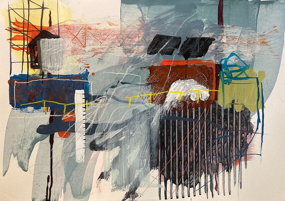 Whilst the first small series of paintings made from the dockyard sketches were semi-representational, there is so much for me still to explore in this subject.