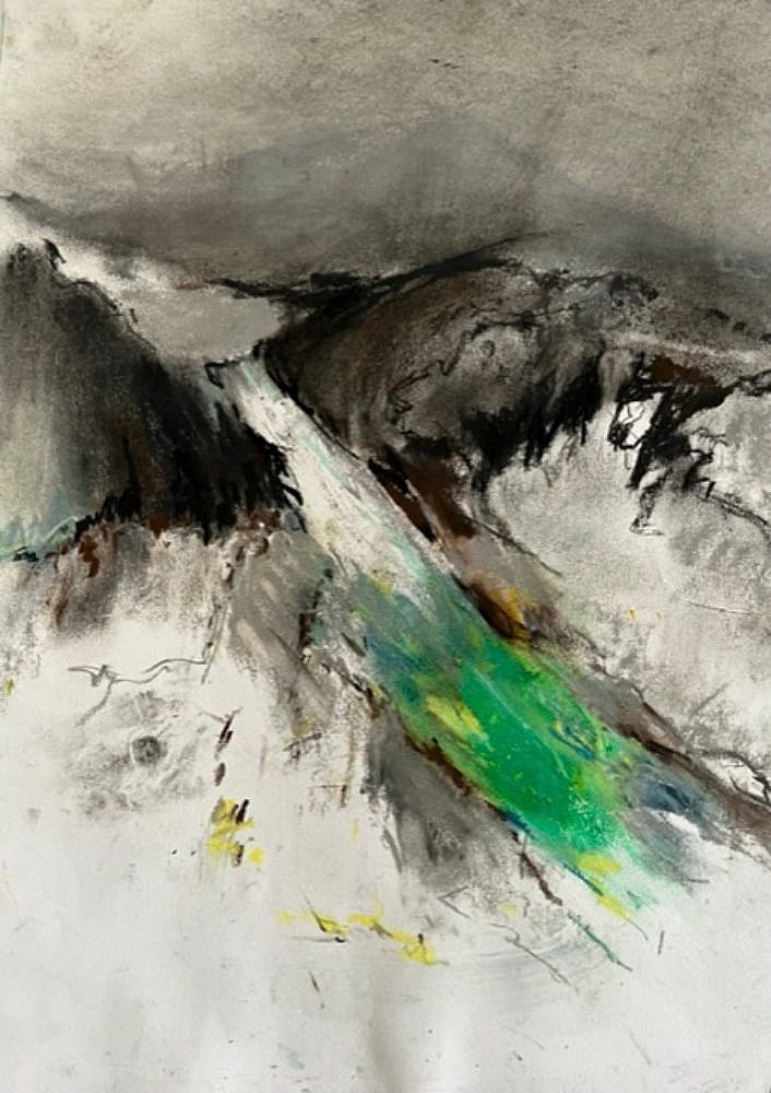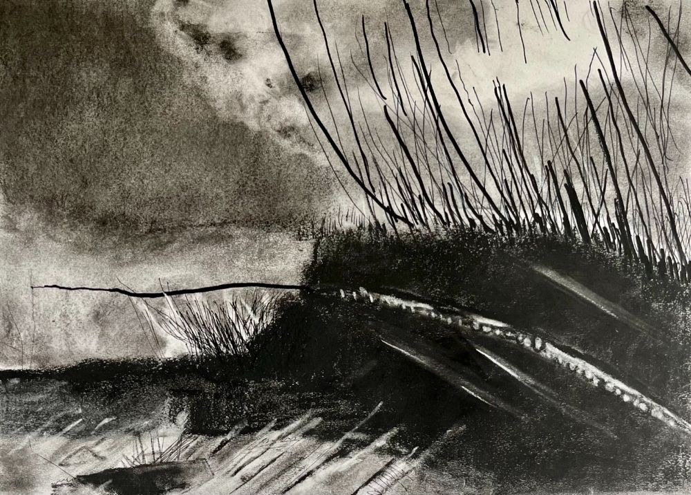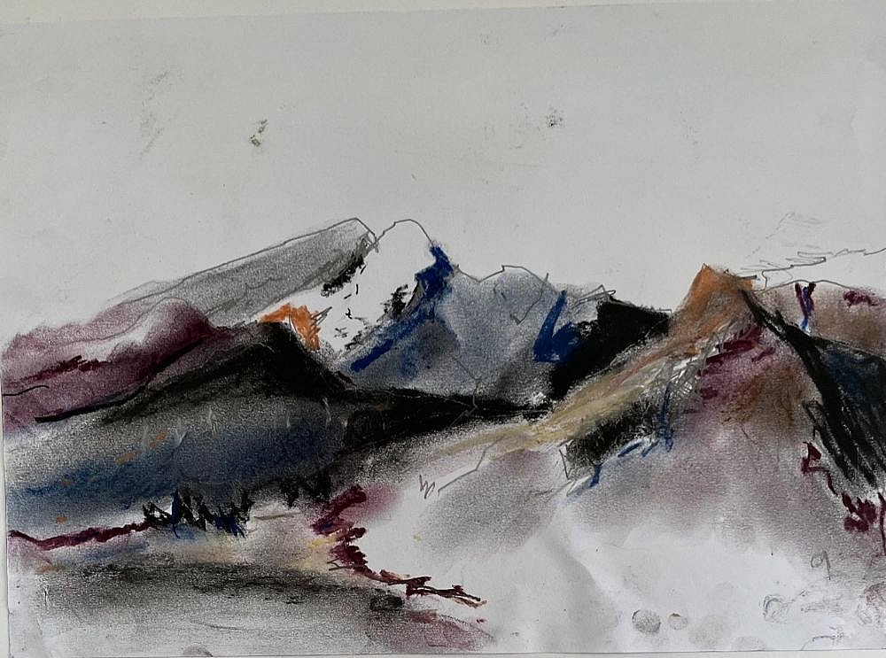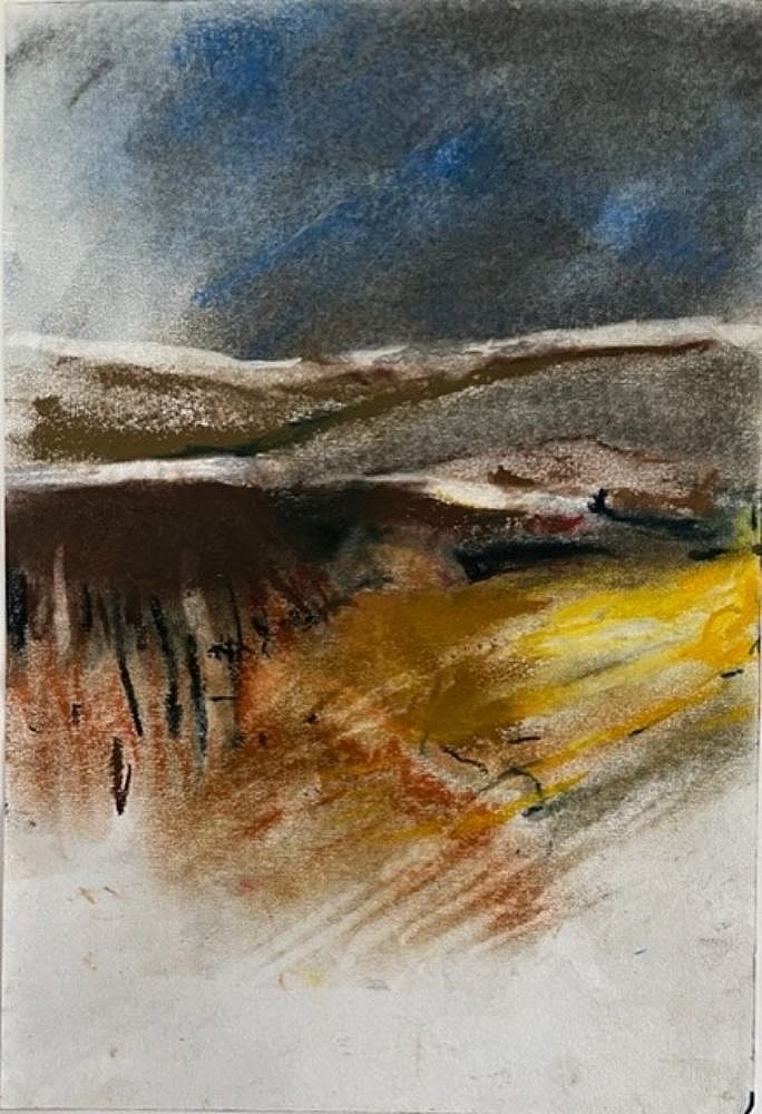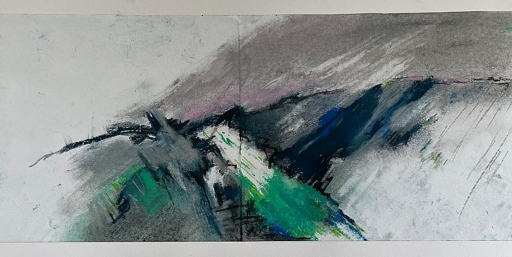 I work mainly in my sketchbooks, in pastel and ink, and I am currently finding ways to express the “felt experience” of a place, rather than a particular view. My sketches have become more abstract over time, and I am trying to develop a greater variety of marks, which reflect my experiences. In addition, I continue to work on making larger work and using a greater variety of media.